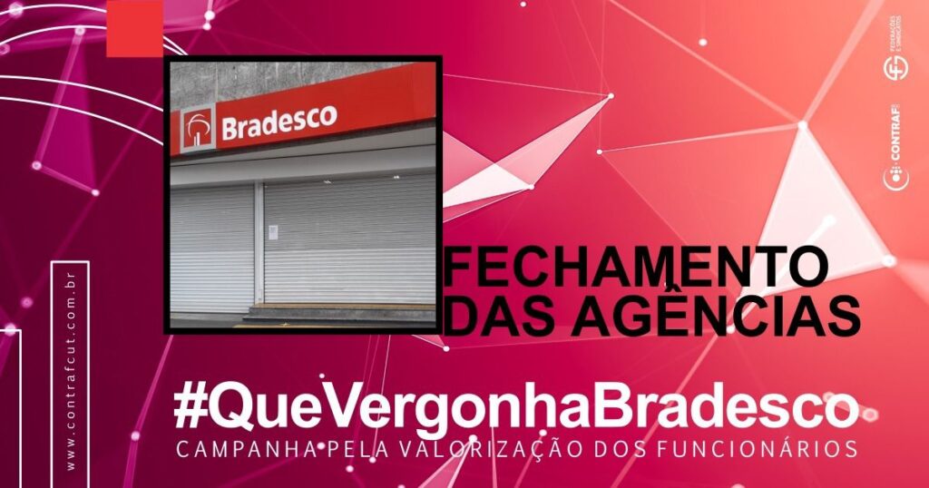 Se o @Bradesco acumula recordes de lucros, é reflexo do trabalho dos seus funcionários. Em troca, eles recebem assédio, desrespeito e falta de segurança. Na propaganda diz “abra-se para o futuro”, mas a realidade é se entregue aos retrocessos. #QueVergonhaBradesco
